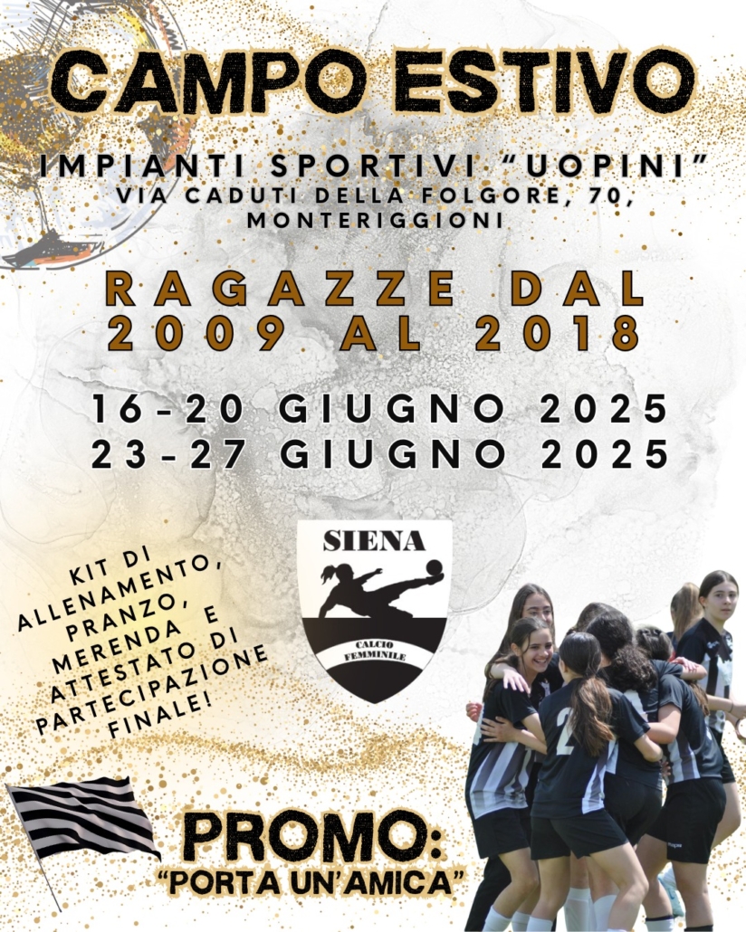 Arriva l’estate e con lei il Campo Estivo del Siena Calcio Femminile che si terranno presso gli impianti sportivi “Uopini”, Via Caduti della Folgore, 70 a Monteriggioni.