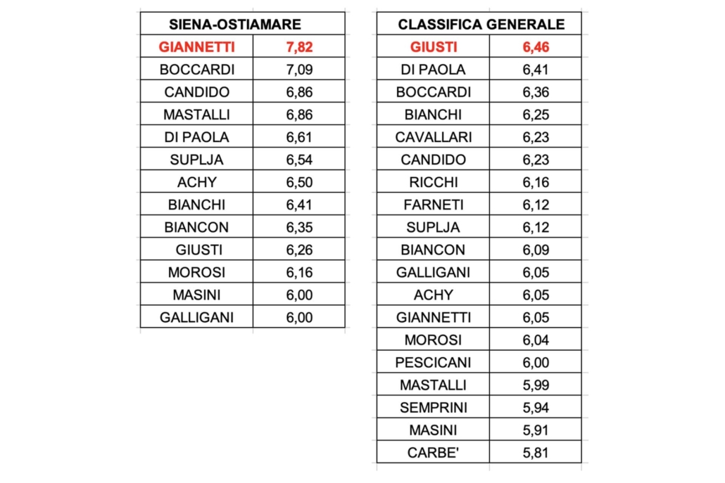 Buona prestazione di tutti coloro che sono scesi in campo, con nota di merito per Giannetti autore di una doppietta, Boccardi, Mastalli e Candido. In classifica generale ancora in testa Giusti che mantiene inalterato il vantaggio su Di Paola.