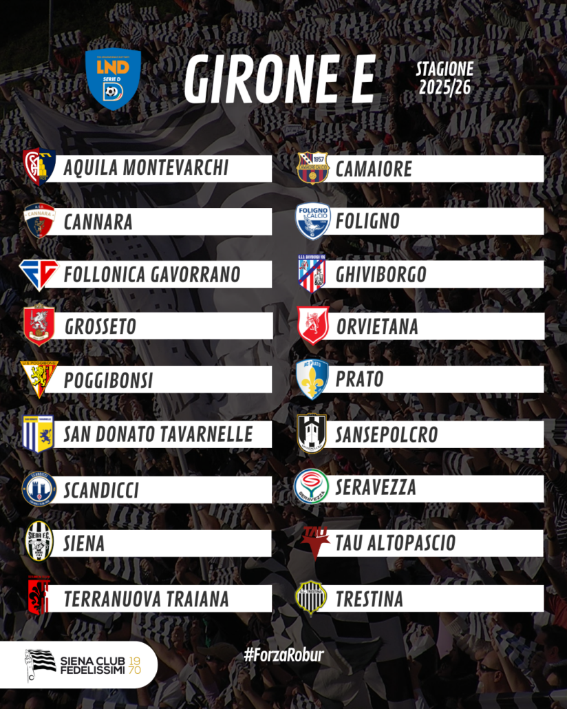 Tre squadre su quattro sono toscane. È un girone quasi “regionale” quello della Robur, svelato pochi minuti fa dalla Lnd. 14 club su 18 arrivano dalla Toscana, incluse le novità Camaiore e Tau Altopascio. Quella più clamorosa è però l’inserimento del Prato. Quattro le compagini dall’Umbria (a Foligno, Orvietana e Trestina si aggiunge la neopromossa Cannara, mentre il Sansepolcro fa parte delle toscane pur partecipando all’Eccellenza umbra). Nessuna formazione laziale quindi: l’Ostiamare, come ampiamente previsto, passa al girone F, mentre a sorpresa la Flaminia trasloca nel girone G. Anche la Liguria non è rappresentata come regione dopo la retrocessione della Fezzanese. Questa la composizione del Girone E: