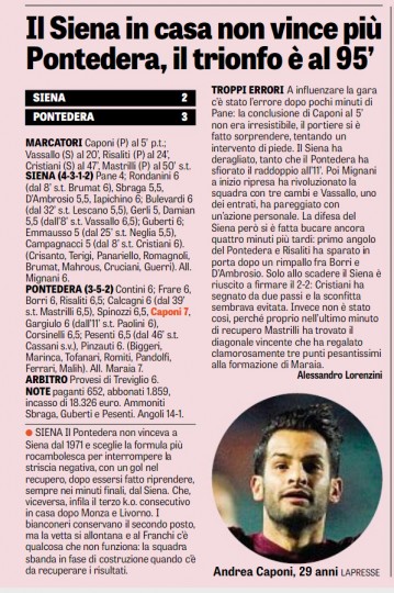 Rassegna stampa Gazzetta-Il Siena in casa non vince più. Pontedera in trionfo al 95′ 13/11/2017 Condividi