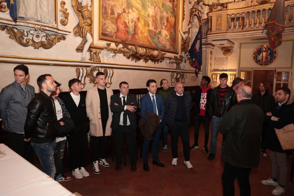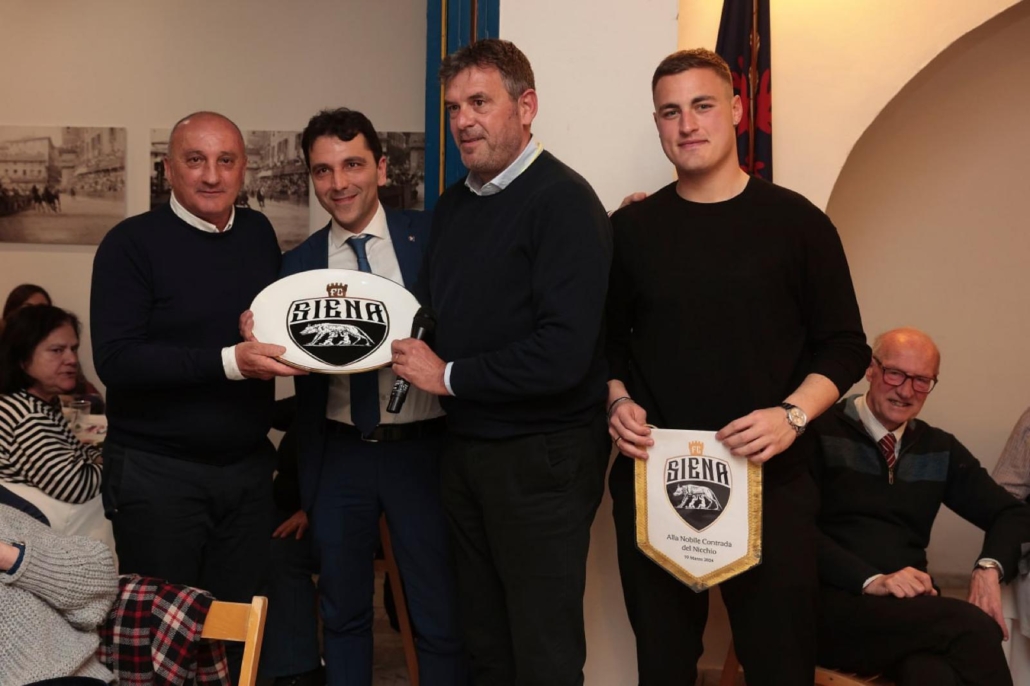 Prosegue il tour nelle contrade del Siena Fc, che ieri ha fatto tappa nella contrada del Nicchio. La delegazione del club bianconero ha visto la presenza di una parte dello staff tecnico, con in testa mister Magrini, e anche della squadra, capitanata da Filippo Siliberto, contradaiolo del Nicchio. I giocatori e lo staff hanno avuto modo di visitare la chiesa e il museo della Contrada attraverso una visita guidata, per poi concludere con la cena di rito insieme ai nicchiaioli. “A nome di tutta la società si ringrazia l’Onorando Priore Davide Losi, il Presidente di società Marco Meini e tutte le persone presenti che hanno contribuito alla realizzazione di una serata all’insegna dei colori bianconeri e al mondo contradaiolo”, scrive la società in una nota ufficiale.