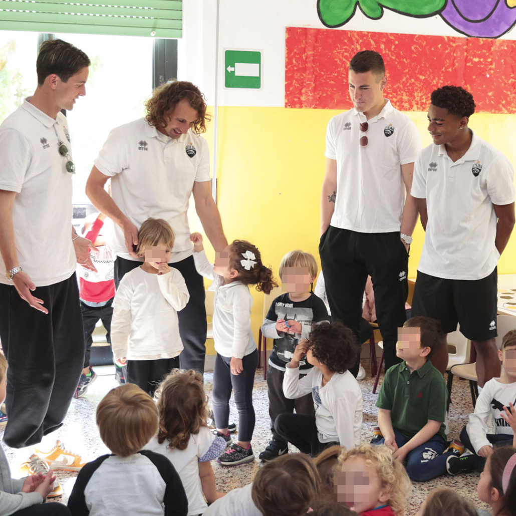 Venerdì scorso il Siena Fc è stato ospite della scuola materna “Cecco Angiolieri”, dove ha trascorso la mattinata in compagnia delle classi Chiocciola e Api. “A nome di tutto il Siena F.C. – si legge nella nota del club – si ringrazia la scuola materna e le sue docenti per la calorosa accoglienza ricevuta, sperando che questo sia solo l’inizio per rivedere il Siena Calcio nelle scuole del territorio senese”.