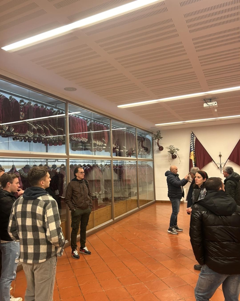 Dopo la visita al museo tutti si sono spostati a cena nei locali della Società Elefante. Cena molto partecipata con molti contradaioli e i rappresentati dei vari club e gruppi organizzati.