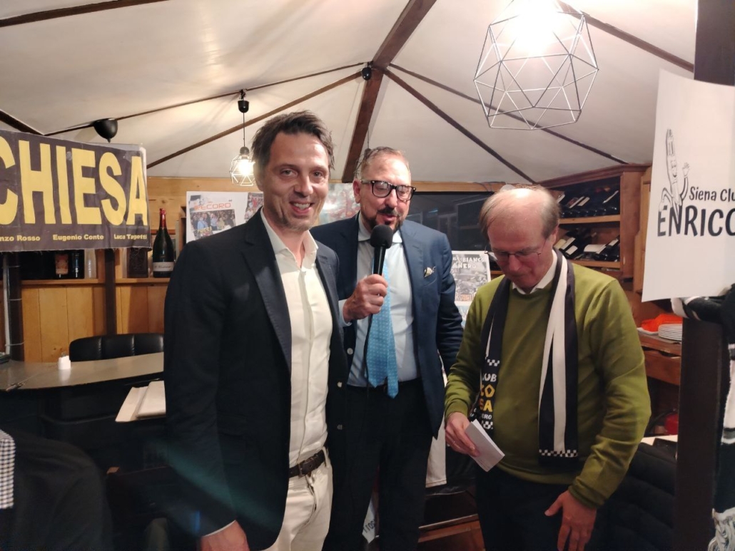 Una serata speciale, con ospiti illustri, per celebrare il ventennale dalla nascita dell’associazione. Ha fatto le cose in grande il Siena Club Enrico Chiesa, che nel consueto appuntamento annuale di fine stagione si è prodigato per la consegna delle ambite statuette ai protagonisti bianconeri distintisi in questo campionato alla presenza di Enrico Chiesa in persona. A ricevere il prestigioso premio “De Luca”, giunto alla 15^ edizione e decretato dal direttivo del club e dalla redazione de “Il Bianconero”, sono stati Lorenzo Lollo, in qualità di miglior giocatore del campionato, e il diesse Simone Guerri come personaggio della società ad aver meglio figurato. Per la sezione tifosi storici, invece, “il Roburrino” se l’è guadagnato Fabio Cannoni.