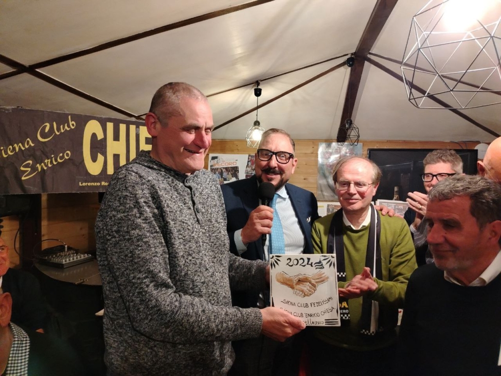 L’occasione, inoltre, è stata anche quella per sancire il gemellaggio ufficiale con il Siena Club Fedelissimi, attraverso una targa celebrativa che Lorenzo Rosso ha consegnato durante la cena a Lorenzo Mulinacci. «Inizialmente Lorenzo – scherza Rosso – non la prese benissimo. Negli anni invece ci siamo avvicinati, soprattutto su quello che riguarda la società la pensiamo allo stesso modo. Adesso siamo giunti ad un momento importante all’interno di un percorso che stiamo facendo insieme, motivo per cui vogliamo ufficializzare il gemellaggio tra i nostri club». (Jacopo Fanetti)