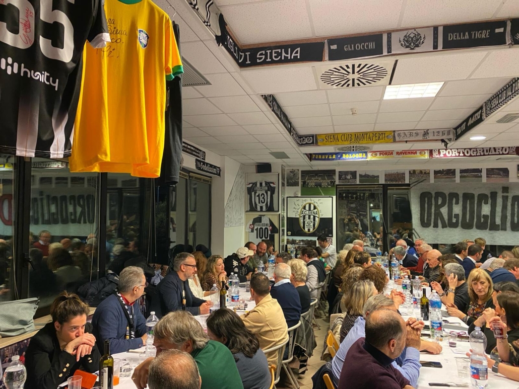 “È una serata meravigliosa che porterò nel cuore fino alla fine della mia vita – ha detto l’allenatore, Lamberto Magrini – abbiamo vissuto un’annata bellissima piena di emozioni, spero che continueremo a lavorare insieme per riportare il Siena tra i professionisti”. “Il mister è particolare, va lasciato stare fino alla fine del campionato e poi parleremo, ma l’intenzione è di ripartire da lui”, sottolinea il dg Simone Farina, che annuncia la prosecuzione del rapporto col direttore sportivo Simone Guerri. “Un onore continuare quest’avventura – le parole di Guerri – sono venuto qui al buio, siamo nati nella difficoltà e questa cosa ci ha stretto, abbiamo portato avanti dei valori morali che voi tifosi ci avete trasmesso. A Siena ho una ferita aperta (la finale di Pescara, ndr), mi impegnerò per riportare questi colori più in alto possibile. Godiamoci il presente e cerchiamo di costruirci un bel futuro tutti insieme”.