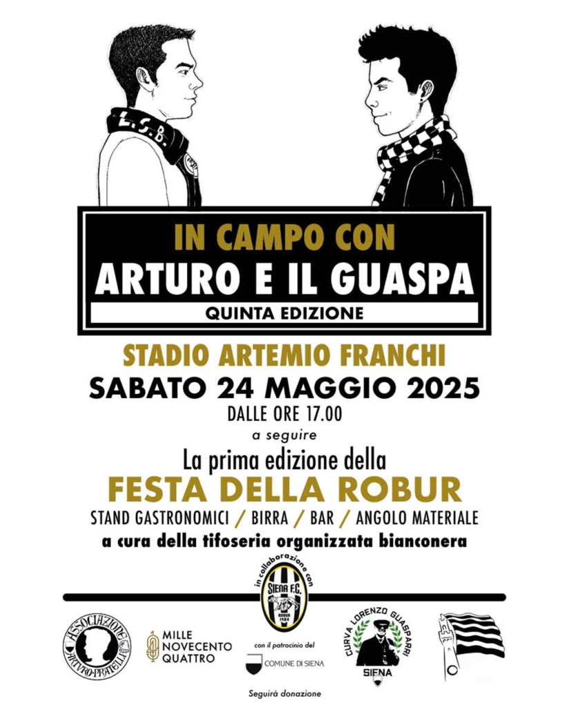 Prima dell’inizio del quadrangolare “In campo con Arturo e il Guaspa”, con tanti ex bianconeri ad integrare le squadre in campo, i gruppi organizzati attaccheranno tutti gli striscioni, alcuni anche storici in Curva e Gradinata.