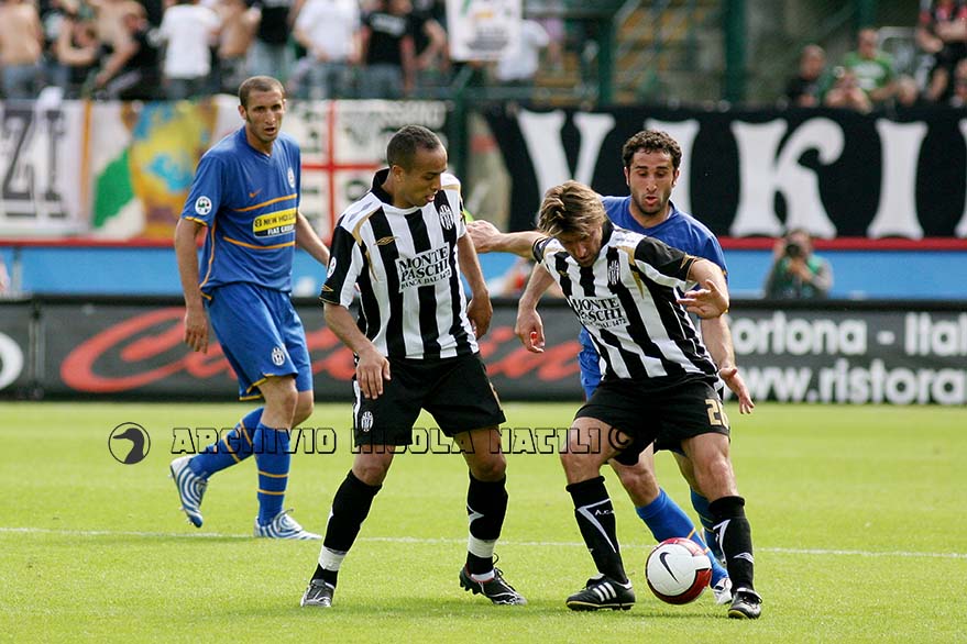 Quindici anni e sentirli tutti! Era il 4 maggio del 2008, 17^ giornata di ritorno, quando il Siena di Beretta superò con una rete di Kharja la Juventus allenata da Caludio Ranieri. Una vittoria prestigiosa, la prima volta con i torinesi, che certificò la salvezza matematica della Robur. Eravamo in 14.000 al Rastrello, mancava solo uno, un grande giornalista, un amico di tutti, che ci aveva lasciato da pochissime ore: Paolo Maccherini a cui verrà dedicato un minuto di silenzio. Alla prima azione vera della Robur, Kharja vince un rimpallo al limite dell’area, lascia inchiodato Chiellini e disegna una traiettoria imprendibile per Buffon. Esplode la gioia, inizia il delirio! La Juve reagisce, ma il Siena ribatte colpo su colpo, senza timori reverenziali, con cattiveria, fino a sfiorare il raddoppio due volte con Maccarone e poi con Galloppa. Al fischio finale la vittoria è in cassaforte e con essa la certezza di rimanere per la sesta stagione consecutiva tra i grandi del calcio italiano. (NN)
