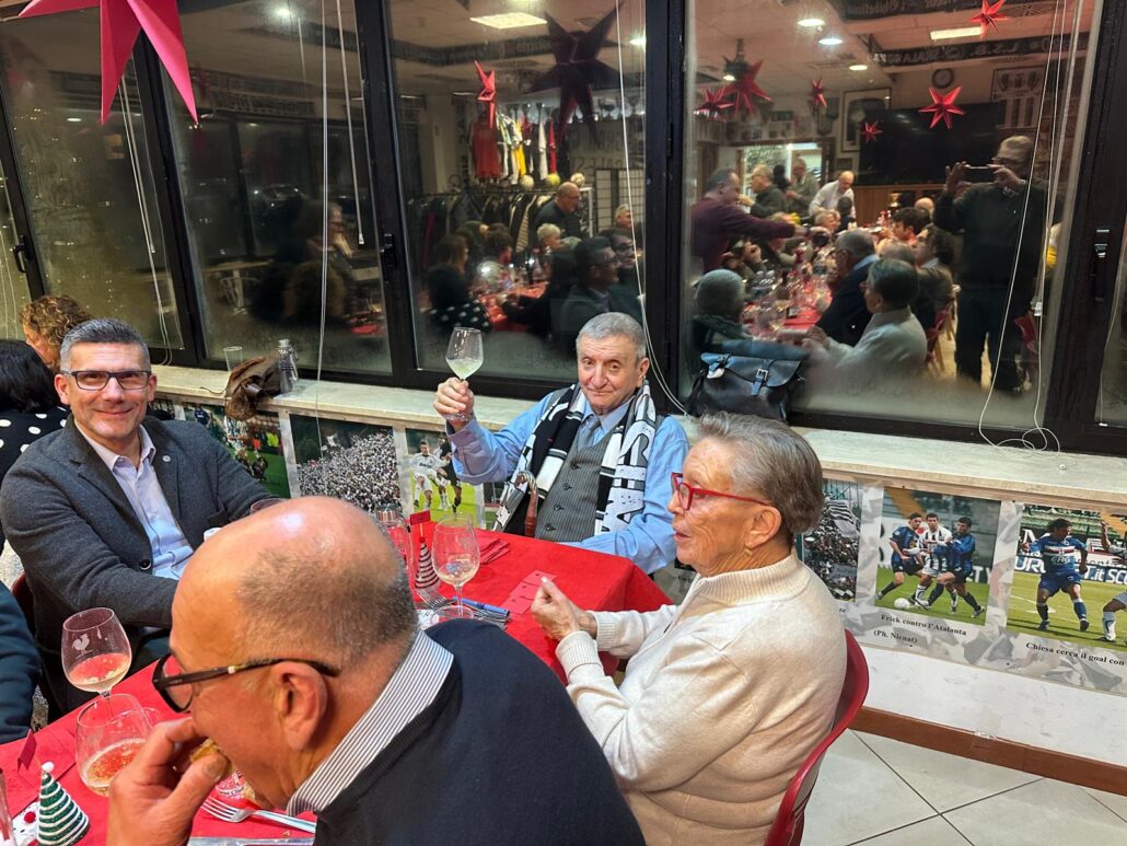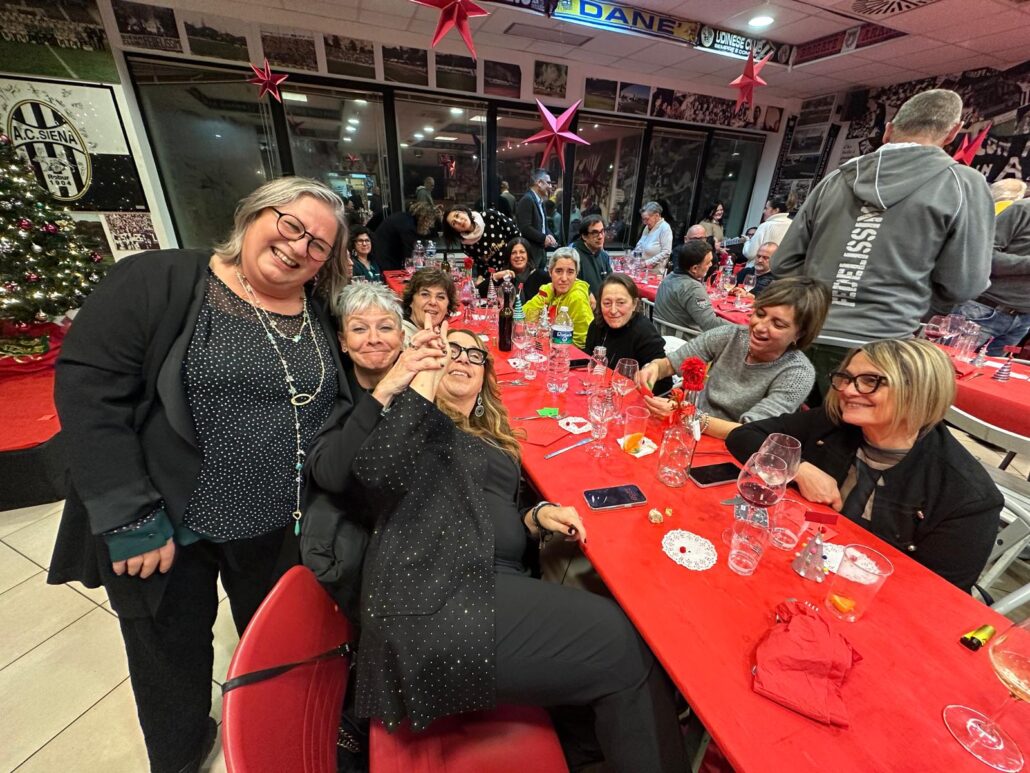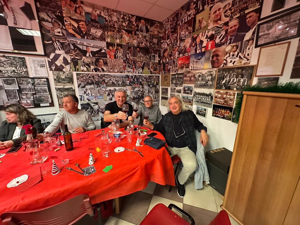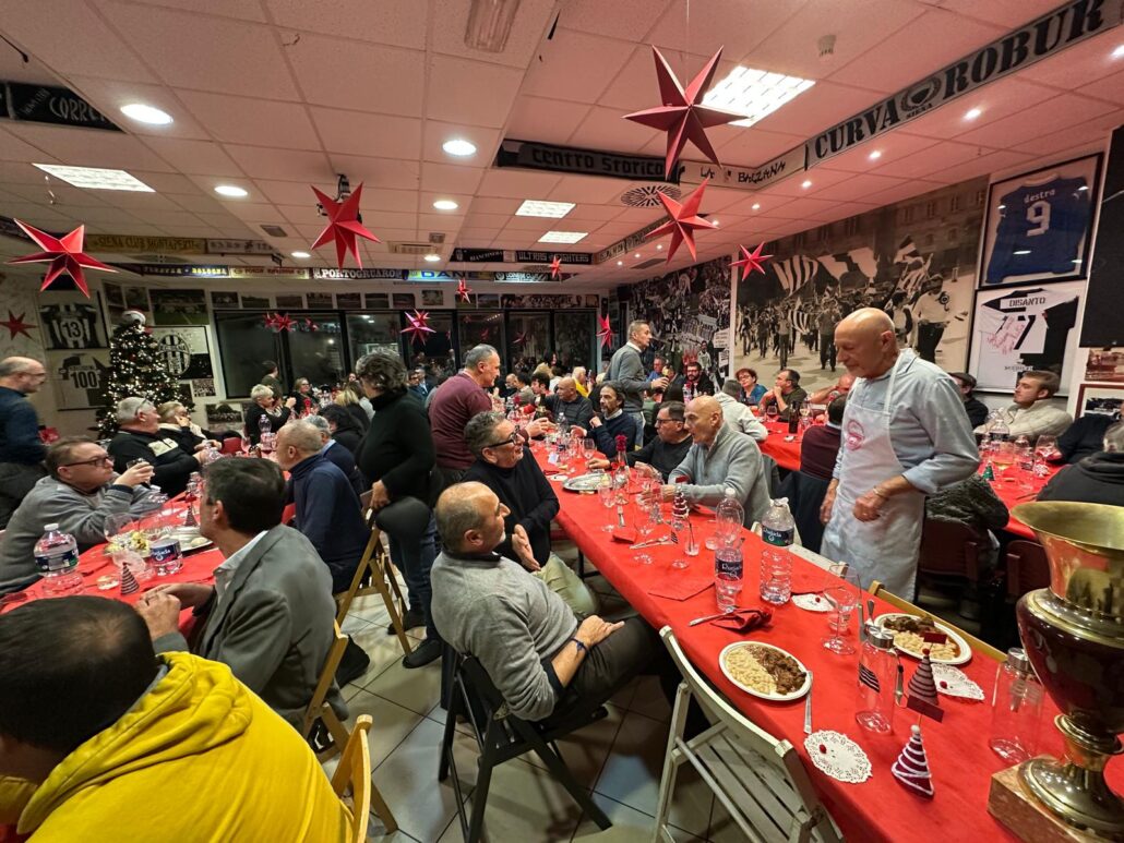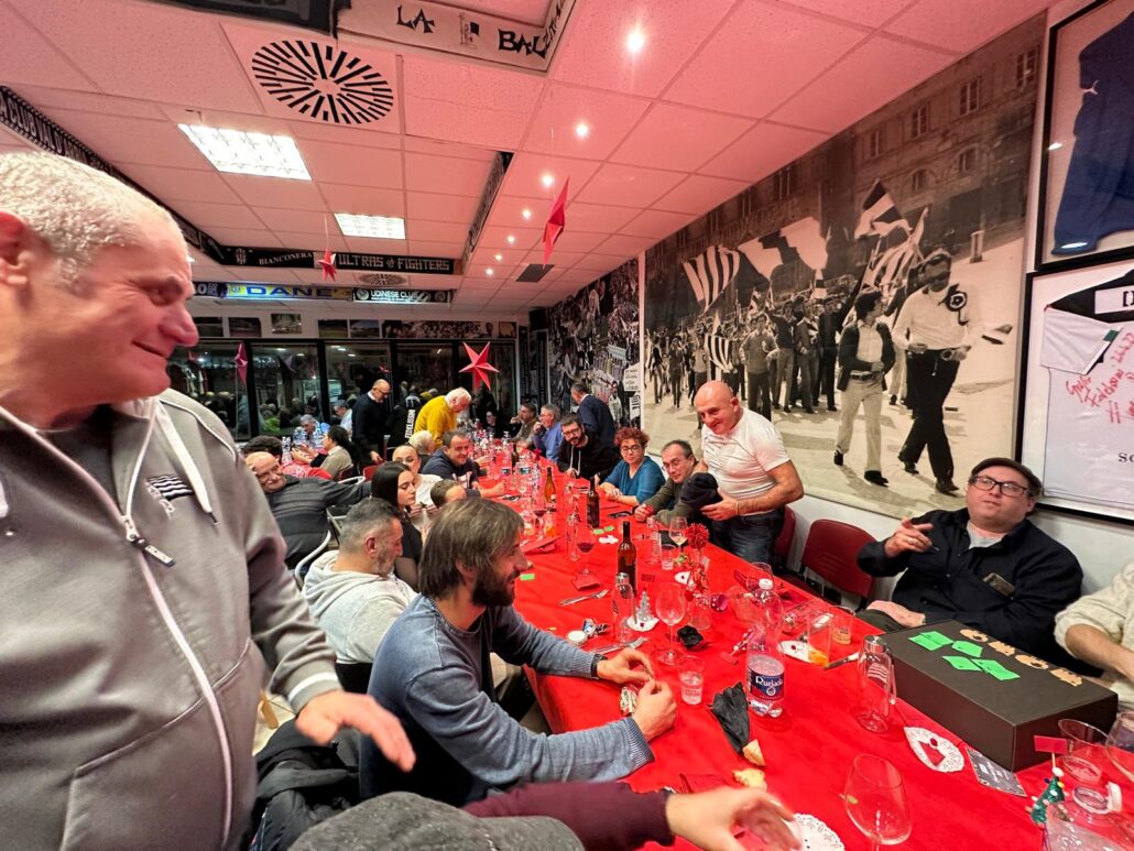 Bella e partecipata la cena degli auguri del Siena club Fedelissimi che ha visto la presenza di quasi 100 partecipanti. Gradita la presenza di una rappresentanza degli altri club e della Curva Lorenzo Gasparri. Ci hanno fatto visita anche gli amici dell’Udinese Club La Zebretta del Friuli con cui c’è un legame che va avanti da venti anni. E’ stato un immenso piacere avere con noi di Mario Savelli un grande personaggio senese e tifoso bianconero che ci ha fatto omaggio di tre palloni autografati dai giocatori di tre stagioni della serie A.