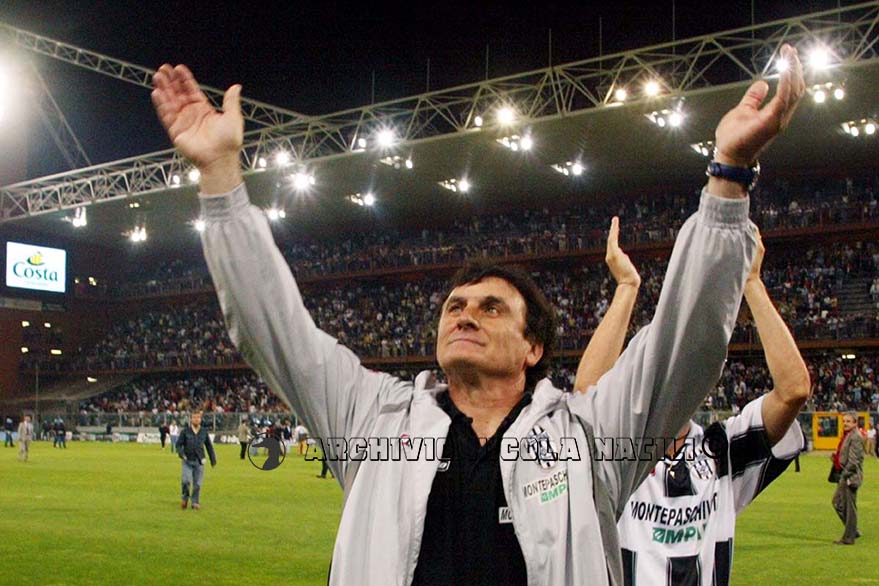 Ventuno anni, ma sembra ieri. Il popolo che sognava “almeno un anno di serie B” si ritrovò tra le grandi del calcio nazionale, in quella serie A in cui nessuno osava sperare. Nessuno, tranne Paolo De Luca che la volle e la inseguì fino a raggiungerla trascinandoci tutti dietro al suo sogno. Ancora una volta, dopo lo spareggio del 1959 con l’Ozo Mantova e la salvezza miracolosa dell’anno precedente fu Marassi ad accoglierci. Tantissimi tifosi ancora increduli di quanto stava per accadere spinsero la squadra verso quel successo che voleva dire serie A. Un traguardo raggiunto grazie ad una società che non si poneva limiti, al fiuto di Nelso Ricci, alla determinazione di Giuseppe Papadopulo e ad un gruppo di giocatori che hanno scritto la pagina più importante della nostra storia. Il Siena in serie A non era più un sogno, la “Lucida follia” di Paolo De Luca ci aveva portato lassù dove nessuno sperava. (Nicnat)