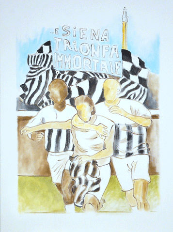 Anche l'Arte, che è passione che prende forma in linee e colori, vuol partecipare alla festa di un' intera città .Forza Siena, ora e sempre.”